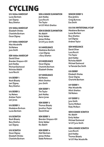 Event 14 - 11.50am - Cycling Senior Elimination Races (A Grade)